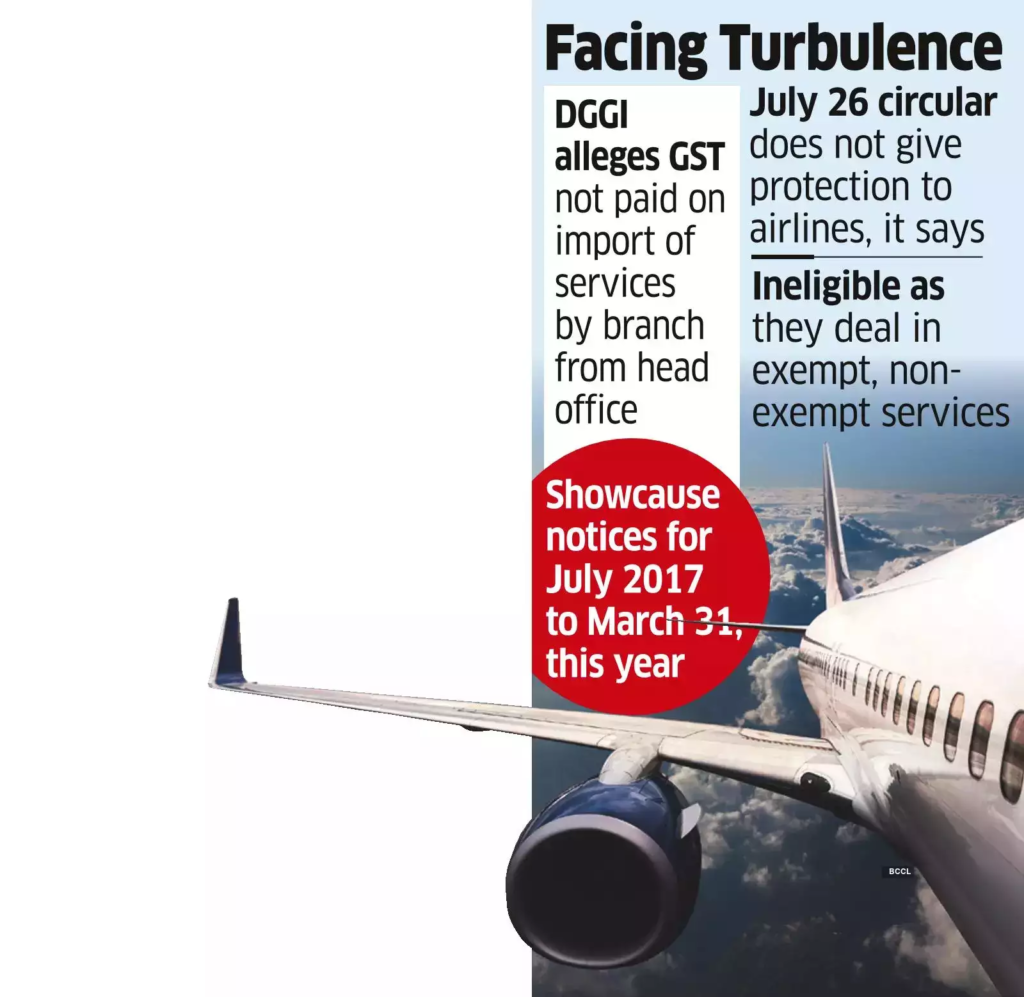A senior official said overseas headquarters of these airlines were providing services such as aircraft maintenance, as well as payments for crew and rentals. DGGI says these services are offered from one legal entity to another, and are therefore liable for GST, which the airlines have not paid.