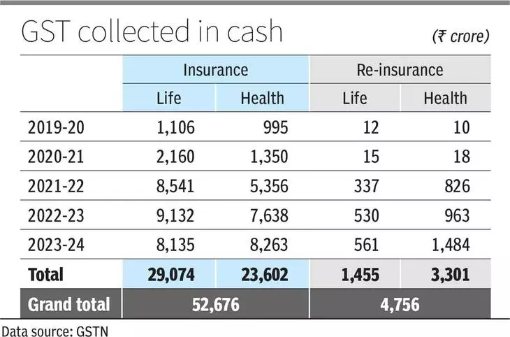 Data mentioned in the written answer by Minister of State in the Finance Ministry Pankaj Chaudhary showed that GST collection was over ₹29,000 crore, while it was over Ts 23,000 crore through health insurance premia. Around ₹4,700 crore was collected through re-insurance premia under life and health insurance.