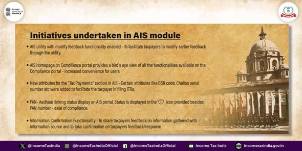 - AIS utility with modify feedback functionality enabled – To facilitate taxpayers to modify earlier feedback through the utility.