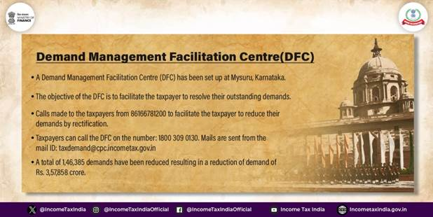 - Taxpayers can call the DFC on the number: 1800 309 0130. Mails are sent from the mail ID: taxdemand@cpc.incometax.gov.in