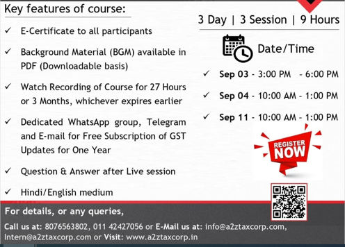 - Dedicated WhatsApp group, Telegram and E-mail for Free Subscription of GST Updates for One Year