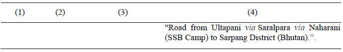 In the said notification, in the TABLE, against serial number 3 relating to land frontier of Bhutan, against item (3) in column 3 relating to Ultapani, for the corresponding entries in column 4, the following entries shall be substituted, namely:-