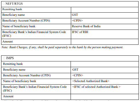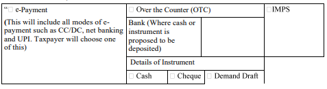 (a) Under the heading Mode of Payment (relevant part will become active when the particular mode is selected) for the portion starting with and ending with “Note: Charges to be separately paid by the person making payment.”, the following shall be substituted, namely: –