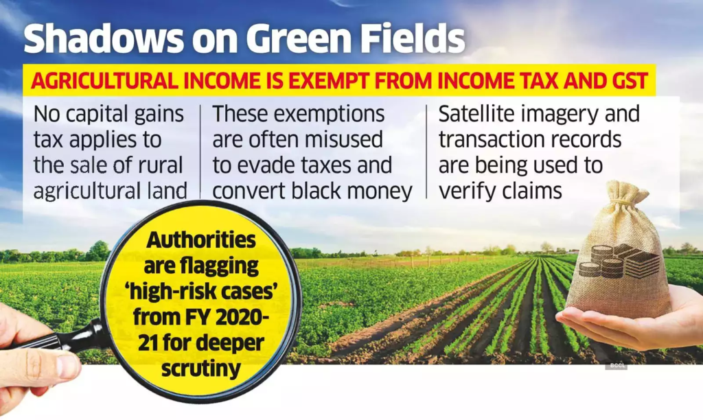 Agricultural income is spared of income tax as well as goods and services tax (GST). The current inquiry owes its origin to a set of cases pertaining to the directorate general of I-T Investigation, Jaipur, which identified entities claiming agricultural income of over ₹50 lakh in their I-T returns.